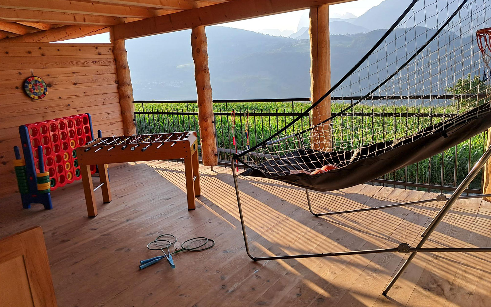 Vicino al maso abbiamo un campo giochi per i nostri piccoli ospiti in cui i bambini potranno divertirsi sullo scivolo, l’altalena o la sabbiera giocando con la ruspa o facendo costruzioni. Molto apprezzato dai piccoli è anche il nostro albero su cui arrampicarsi e cimentarsi in tante fantastiche avventure.